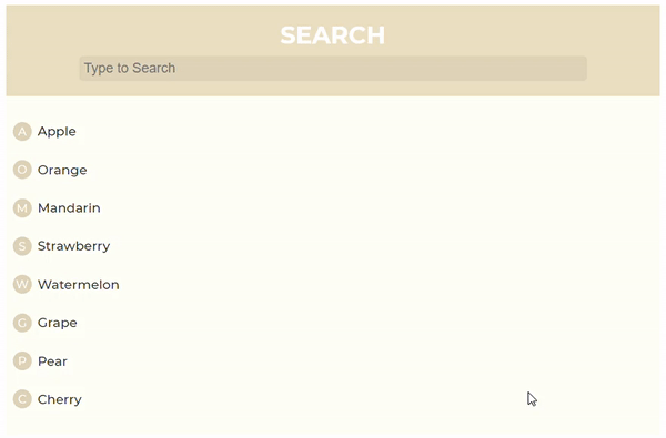 <input onkeyup="filter()" type="text" id="value" placeholder="Type to Search">